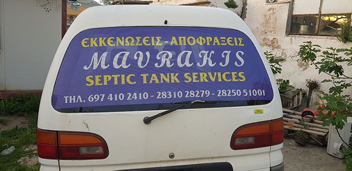 Με πείρα, εξειδικευμένο προσωπικό και άψογο επαγγελματισμό, αναλαμβάνουμε αποφρακτικές εργασίες, εκκενώσεις βόθρων, άντληση και μεταφορά λυμάτων-αποβλήτων, εξυπηρετώντας το Δήμο Αποκορώνου, το Δήμο Σφακίων, αλλά και το νομό Ρεθύμνου. Μέλημά μας στην εταιρεία ΜΑΥΡΑΚΗΣ ΝΙΚΟΛΑΟΣ, η απόλυτη κάλυψη των αναγκών των πελατών μας, ιδιωτών και επαγγελματιών.